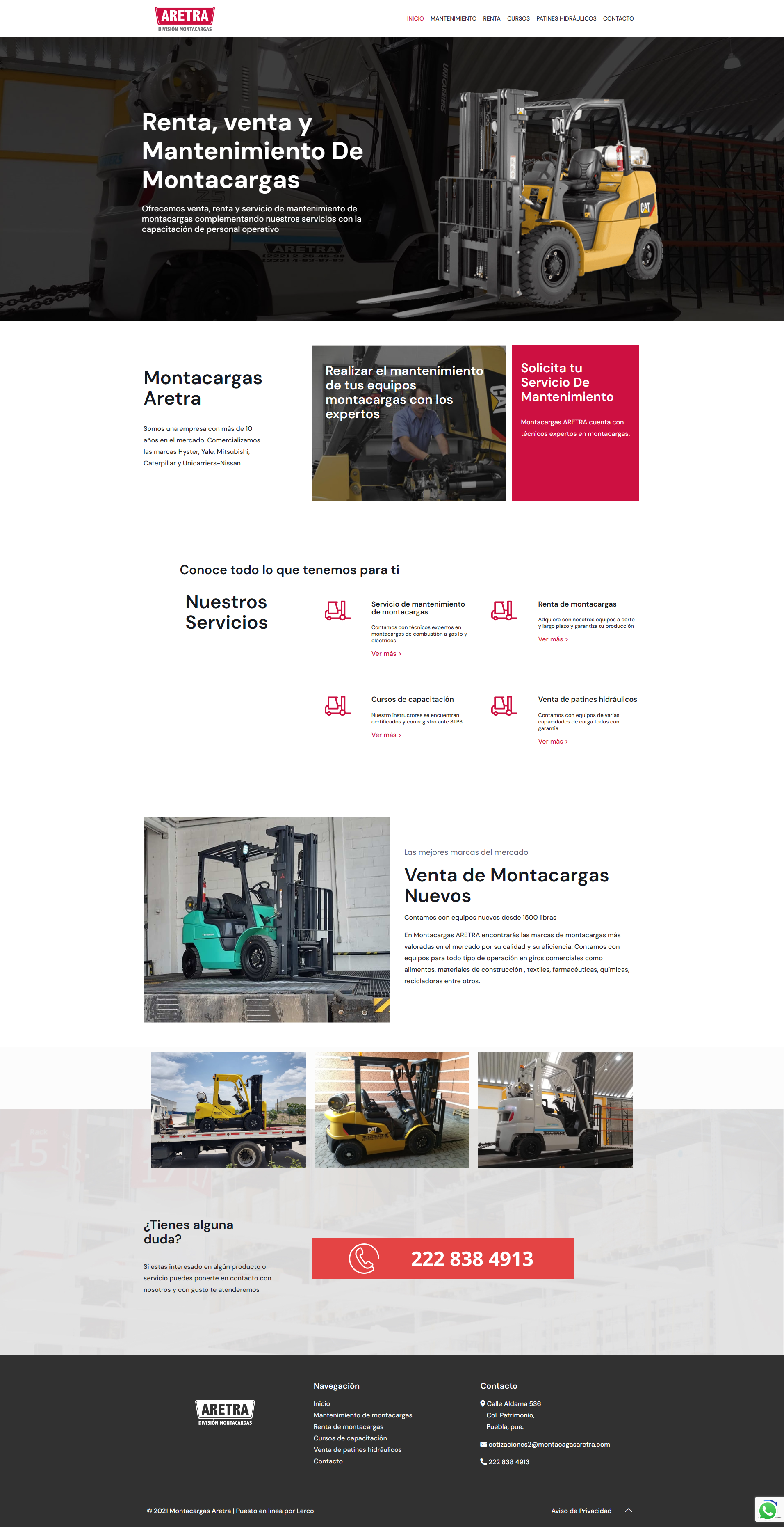 Explora el sitio web de ARETRA, creado por nuestro equipo para ofrecer servicios de mantenimiento de montacargas de manera sencilla. Descubre las soluciones eficientes y accede fácilmente a programas de mantenimiento.