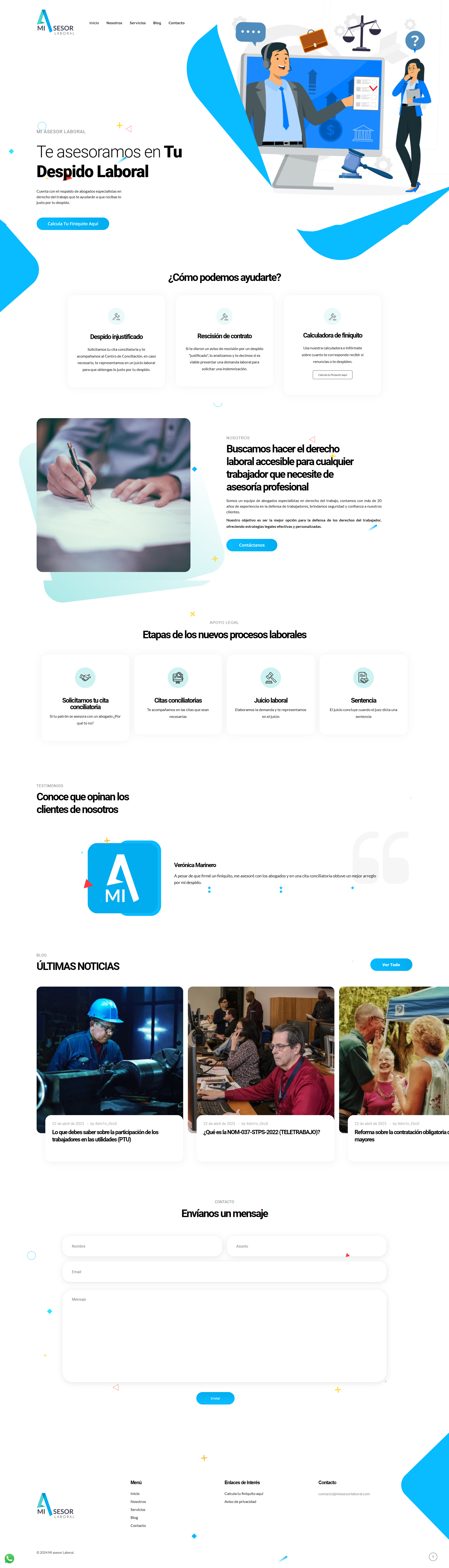 Explora el sitio web de Mi Asesor Laboral, creado por nuestro equipo para ser tu guía en asuntos laborales. Navega por las herramientas y recursos en línea que simplifican la asesoría laboral.